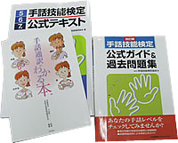 手話技能検定試験に対応した、基礎(単語や基本文例など、イラスト付きで解説)からしっかりと網羅されている公式テキストの他、過去問題集や解説書など使ってわかりやすく講義を進めます。